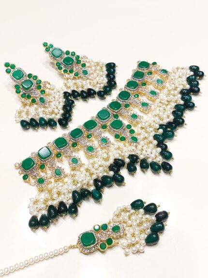 Beautifully designed with premium gold plating and sparkling stones, this jewelry adds a luxurious touch to your outfit. Perfect for weddings, parties, and festive occasions, it’s a timeless piece that enhances your beauty effortlessly.