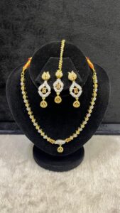 Beautifully designed with premium gold plating and sparkling stones, this jewelry adds a luxurious touch to your outfit. Perfect for weddings, parties, and festive occasions, it’s a timeless piece that enhances your beauty effortlessly.