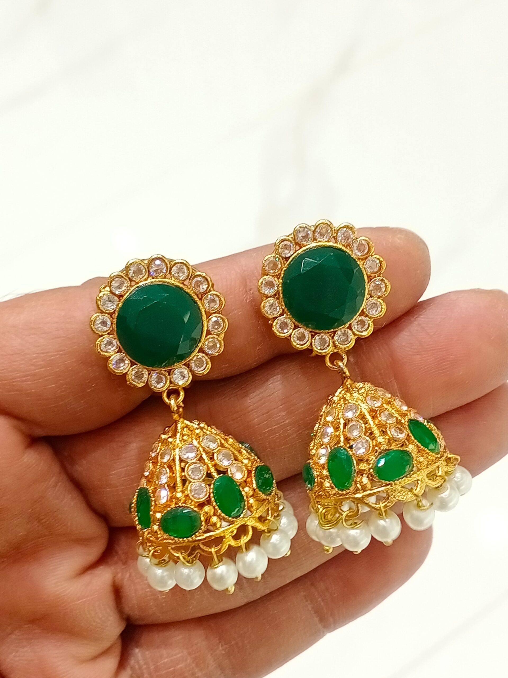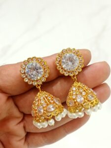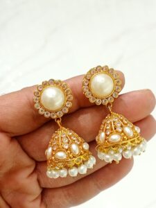 Elegant Traditional Jhumka Earrings – Pearl & Stone Embellished