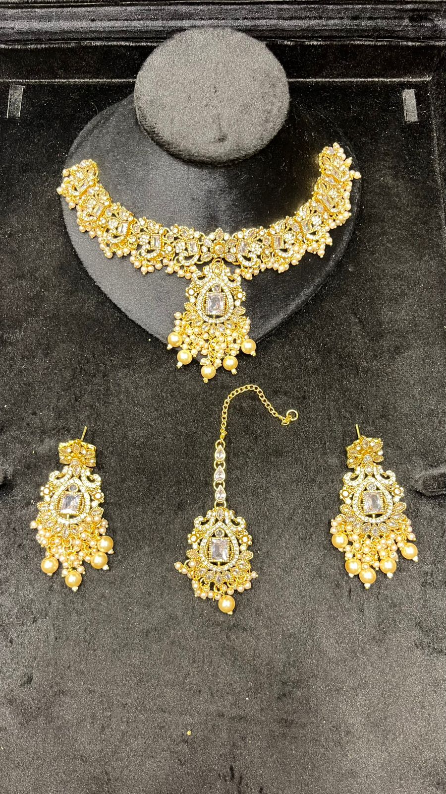 Be the first to review “Golden Kundan Bridal Choker Set with Earrings & Maang Tikka”