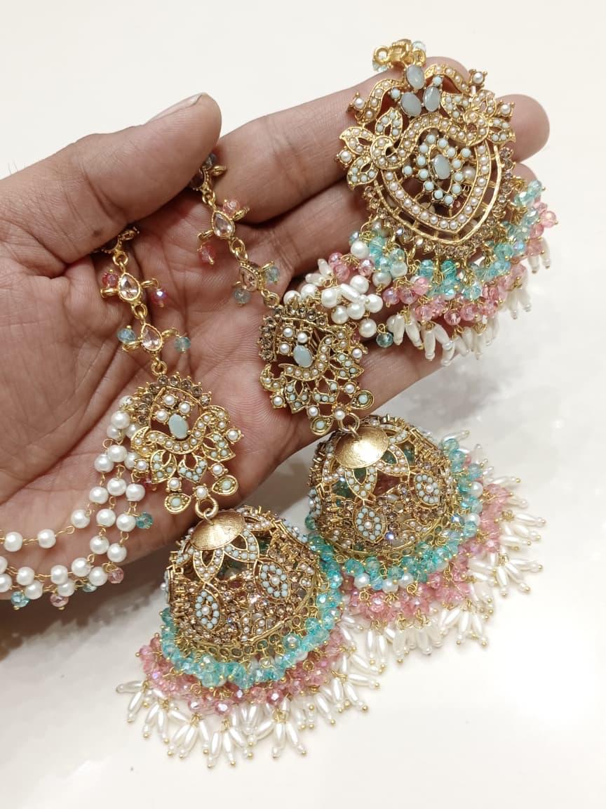 Luxury Golden Pearl Jhumka Earrings – Traditional Bridal Jewelry Set