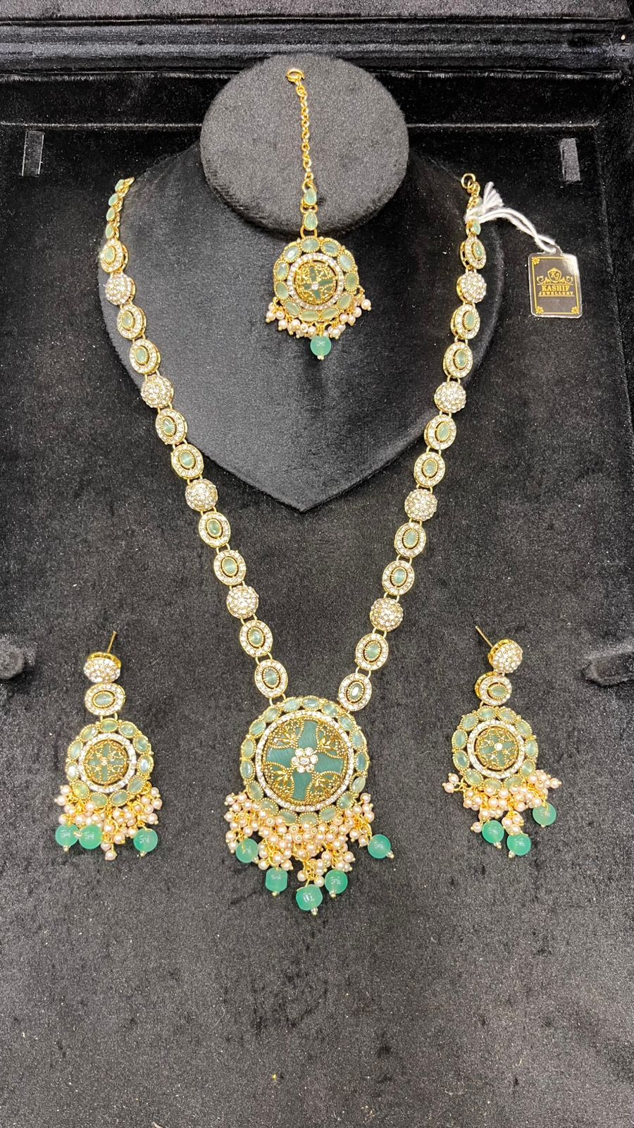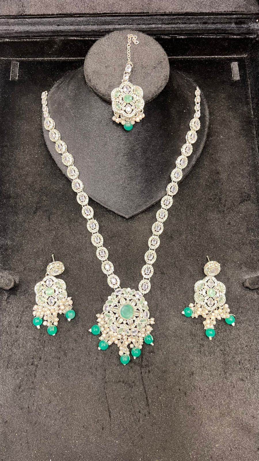 Be the first to review “Mala Set with Green Beads – Traditional Party Wear”
