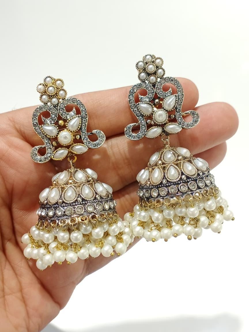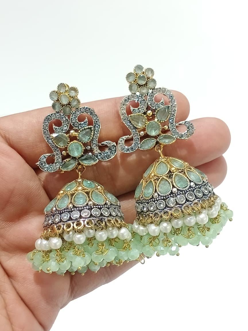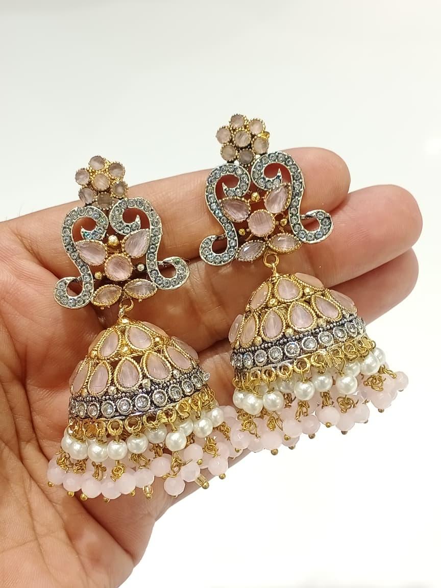 Multicolor Kundan Jhumka Earrings with Pearls – Traditional Indian Bridal Jewelry