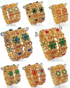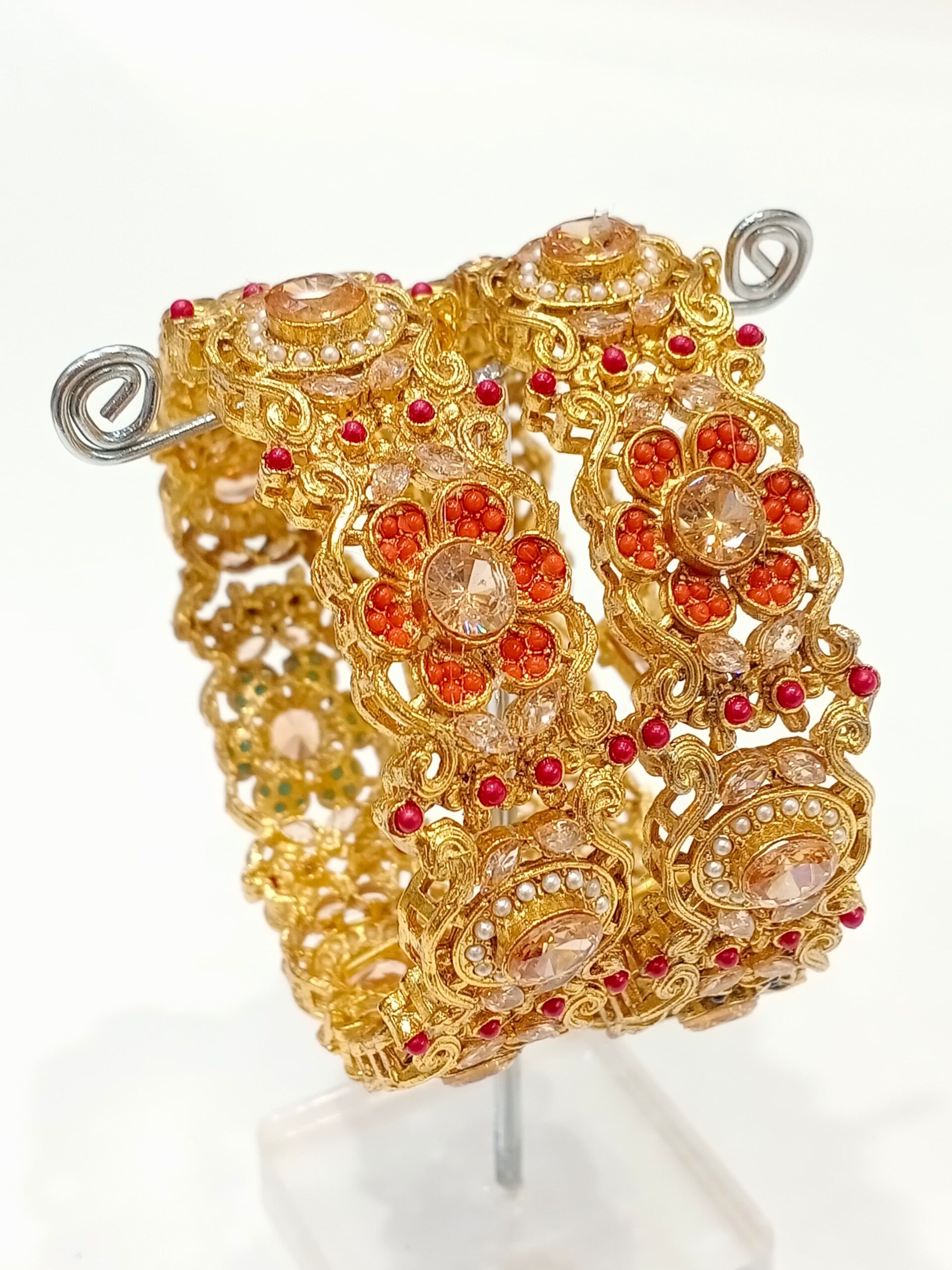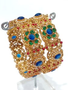 Royal Antique Gold Plated Bangles with Multicolor Stones