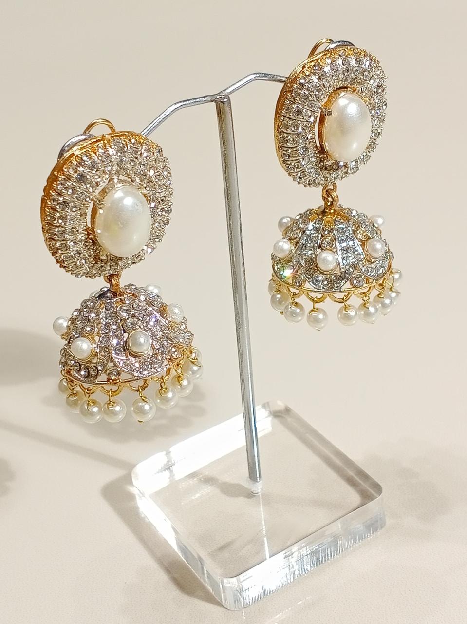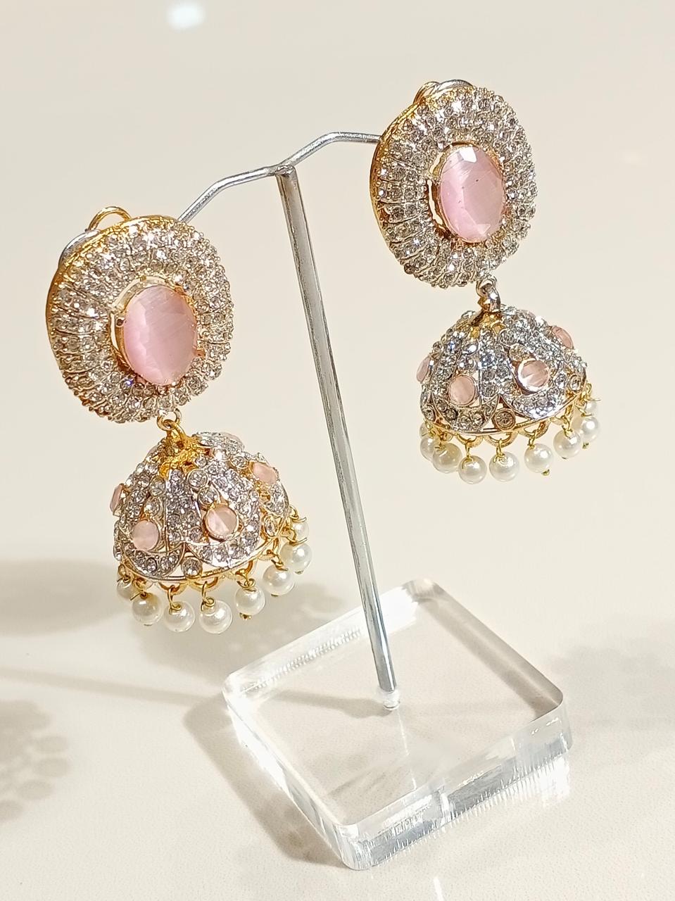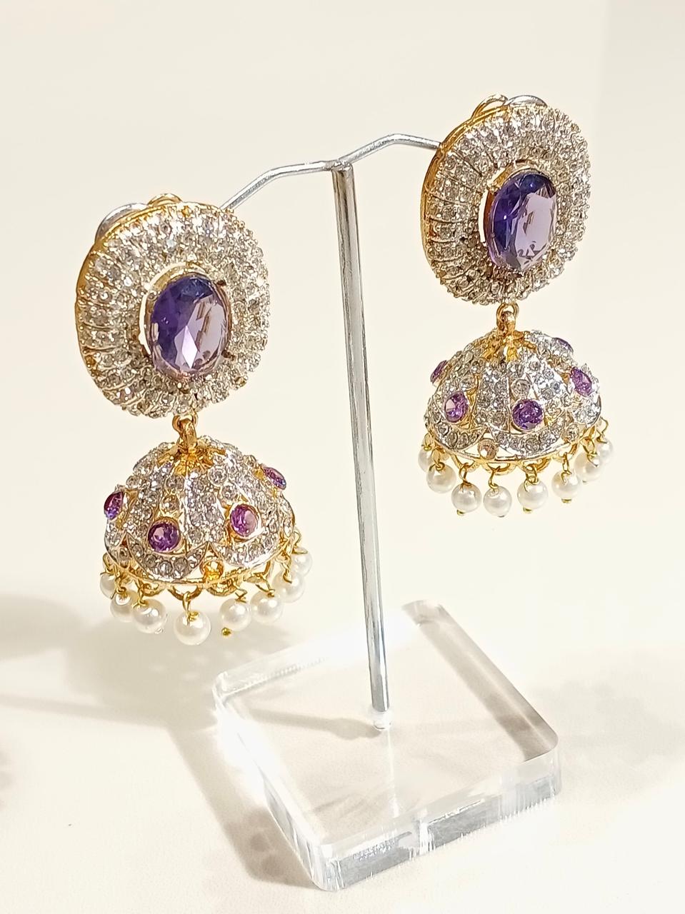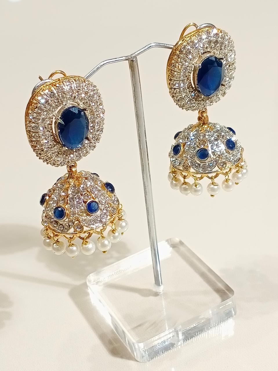Add a royal touch to your style with these elegant black stone jhumka earrings. Beautifully crafted with shimmering silver and gold detailing, these earrings feature a dome-shaped design adorned with sparkling stones. Perfect for weddings, parties, and festive occasions — they bring a graceful blend of tradition and luxury to your look.