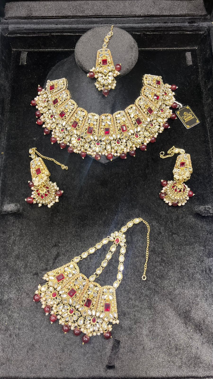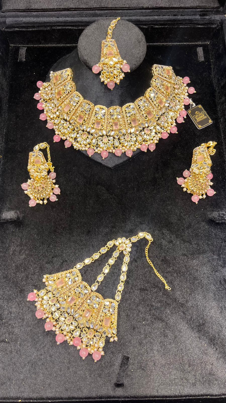 Be the first to review “Royal Gold Plated Kundan Bridal Jewelry Set with Pink Stone Accents”