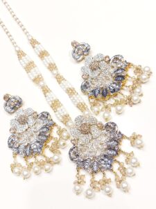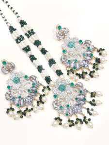 Elevate your ethnic look with this stunning Kundan Mala Set, complete with matching earrings. Designed with intricate craftsmanship and premium materials, this set adds royal elegance to sarees, lehengas, or festive attire.